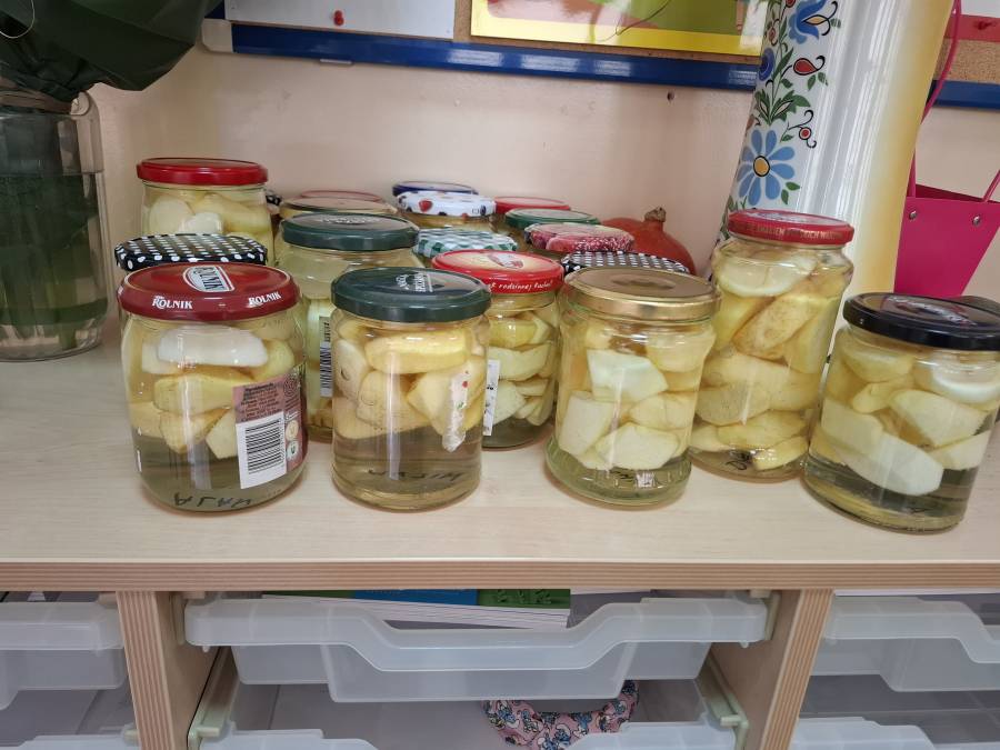 W tym tygodniu realizujemy temat ?Dary sadu?. Poznajemy owoce, nazywamy je, dotykamy i smakujemy. Dziękujemy rodzicom za dostarczone owoce.