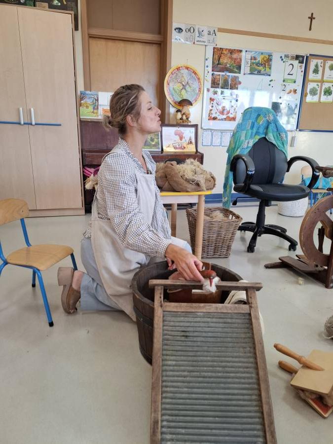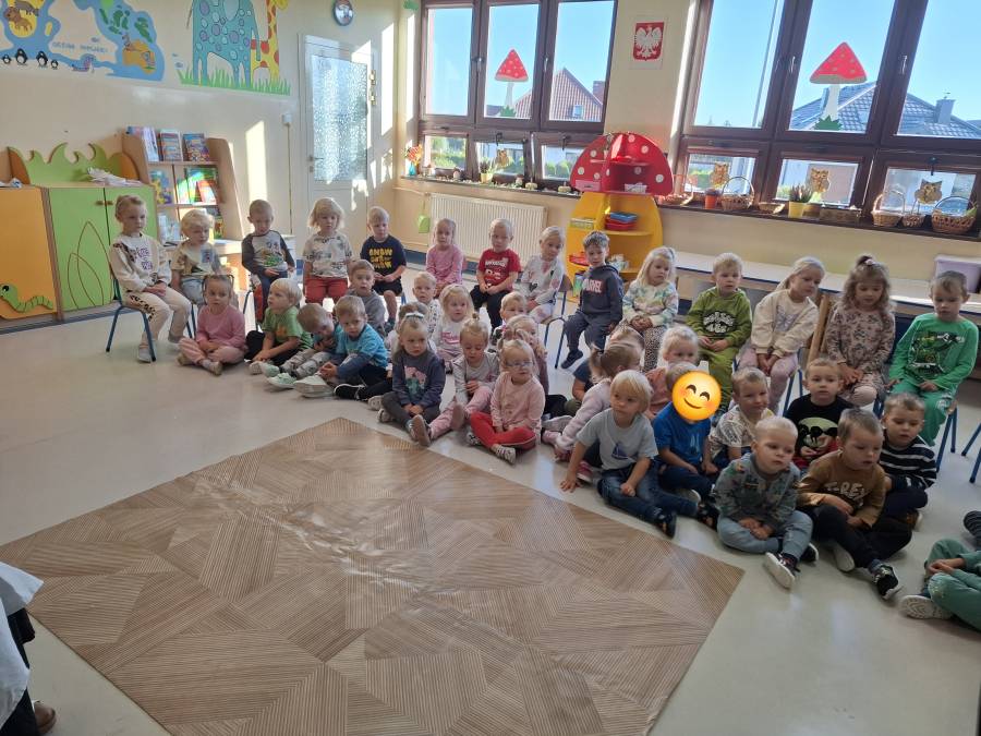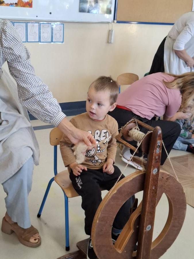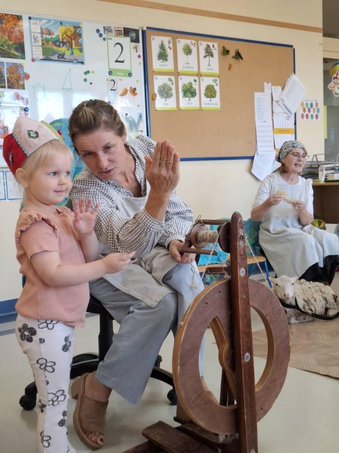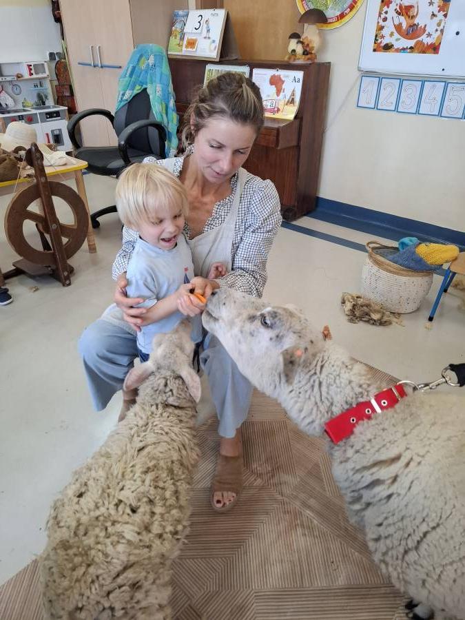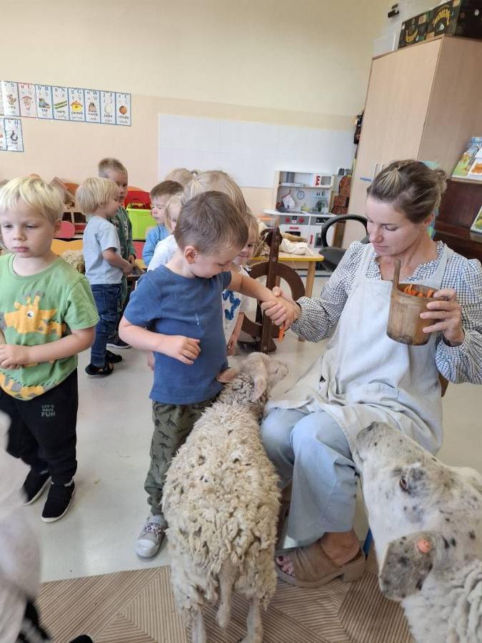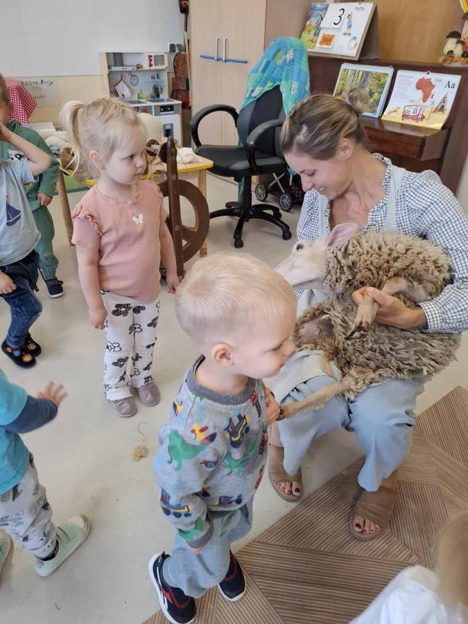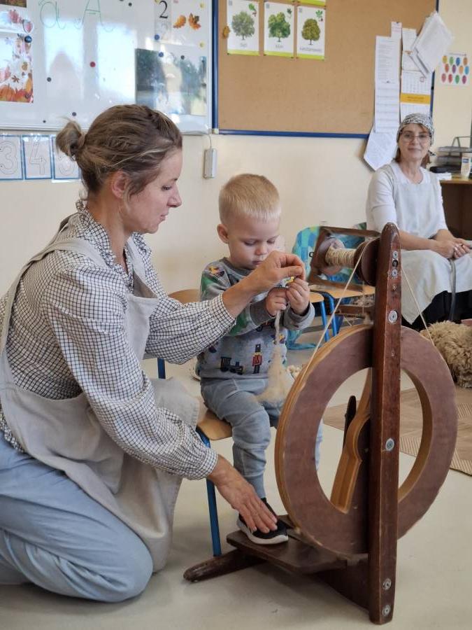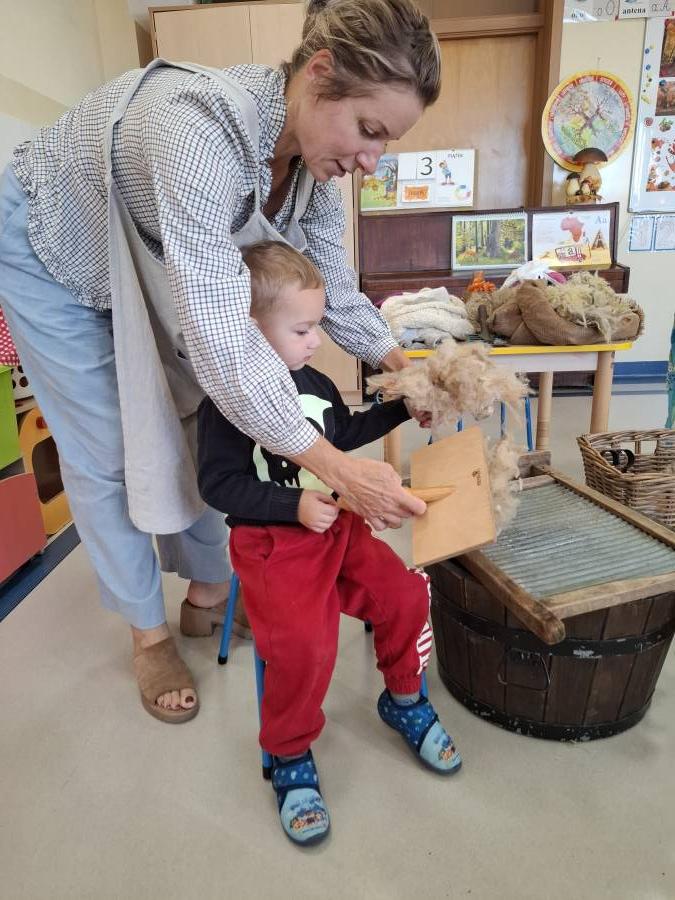 Dnia 2 października odbyły się w naszym przedszkolu warsztaty "Po nitce do kłębka" organizowane przez Zagrodę Powroty. Są to edukacyjne spotkania dla dzieci, które uczą o obróbce wełny od momentu strzyżenia owcy do przędzenia nici. Dzieci poznały życie owiec i baranów, a także mogły pokarmić je marchewką czy pogłaskać.