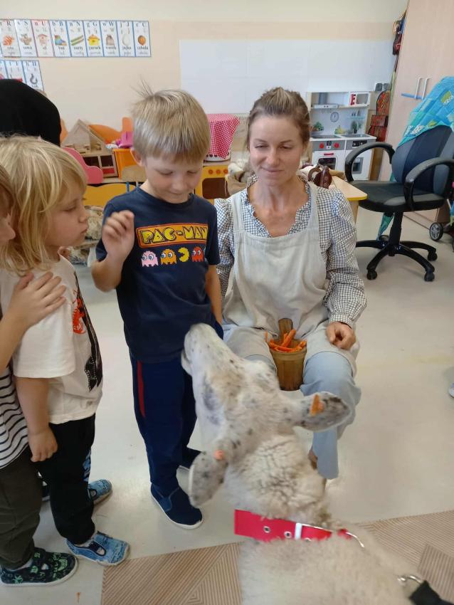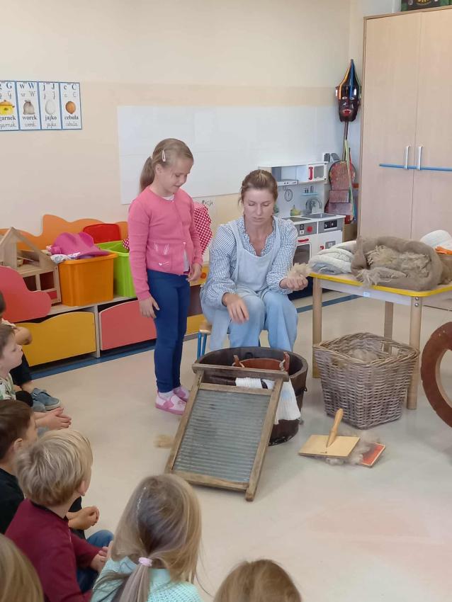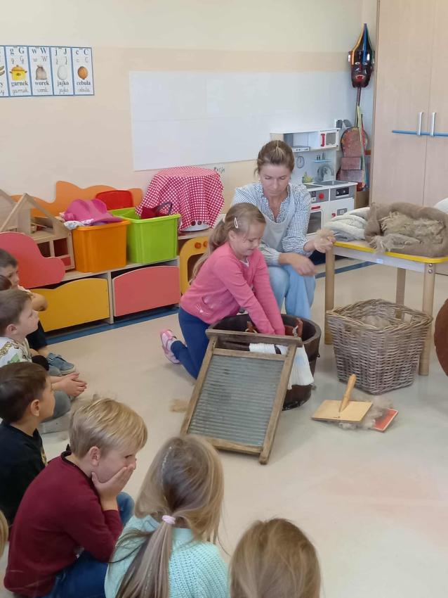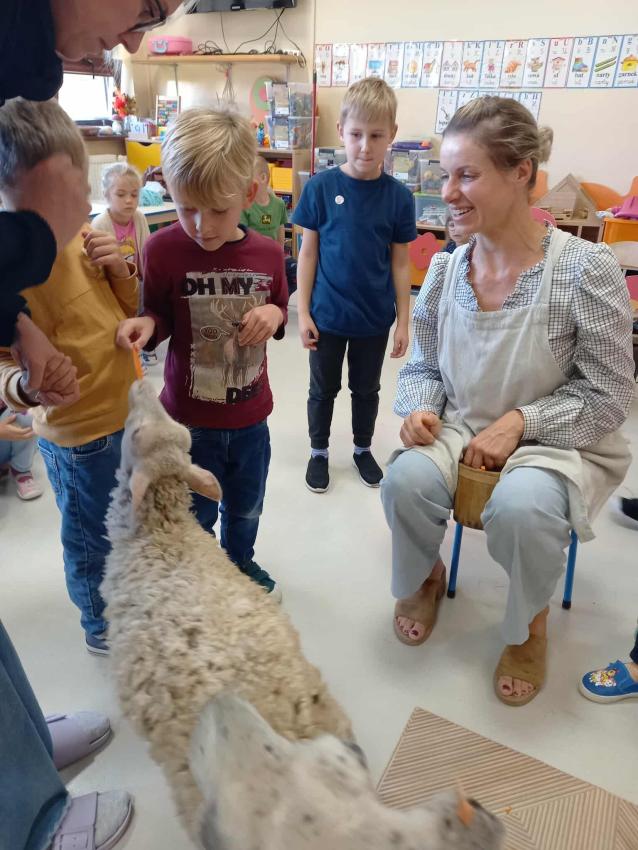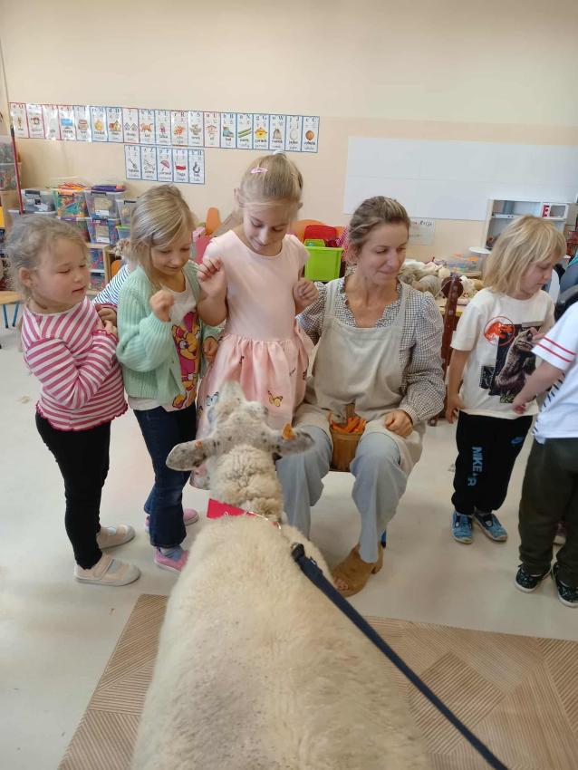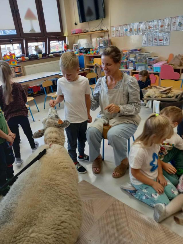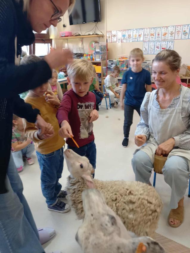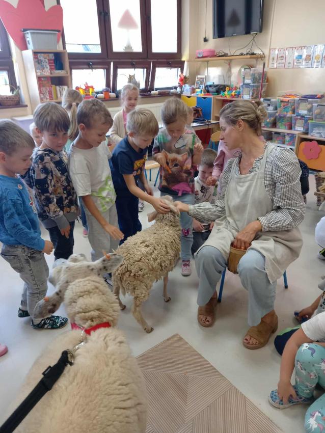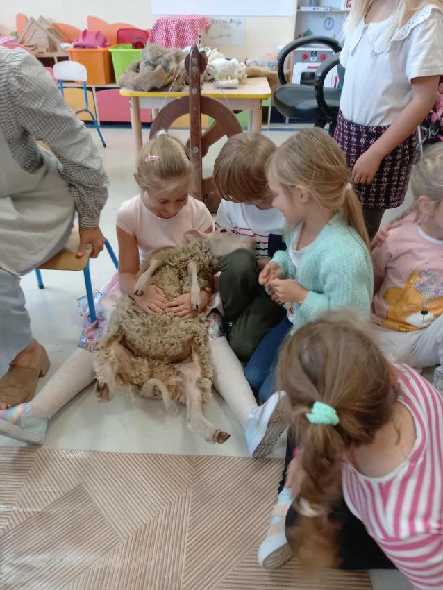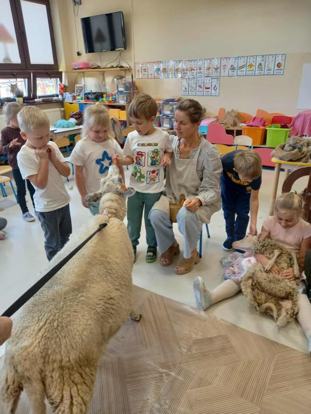 Owce w przedszkolu - Zagroda Powroty - warsztaty.