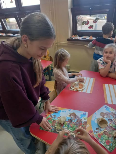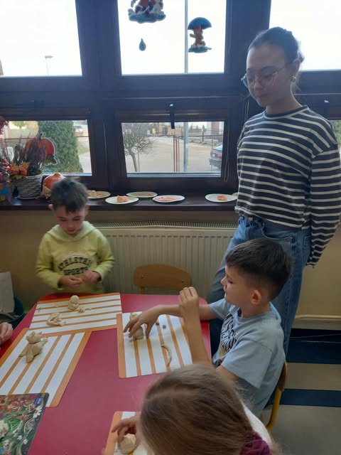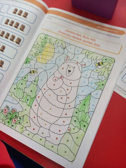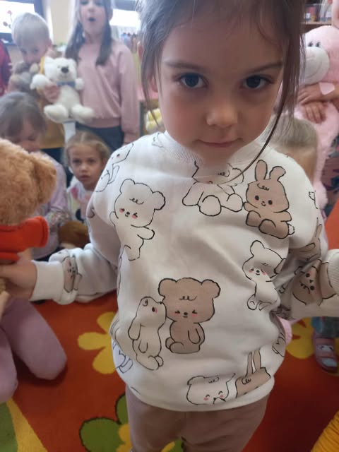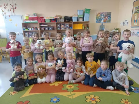 Słoneczka przez cały tydzień, nie tylko dziś, uczyły się z misiem i o misiu :) W dniu Pluszowego Misia odwiedziły nas uczennice z klasy VII G z zabawami misiowymi z masy solnej. Dzieci kolorowały misiom futerka, wyklejały, poznały piosenki o misiu.