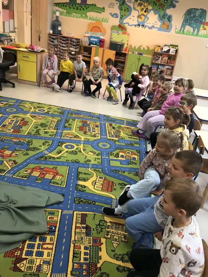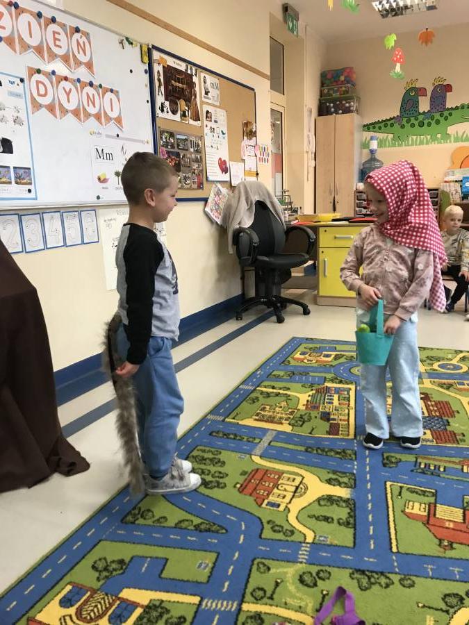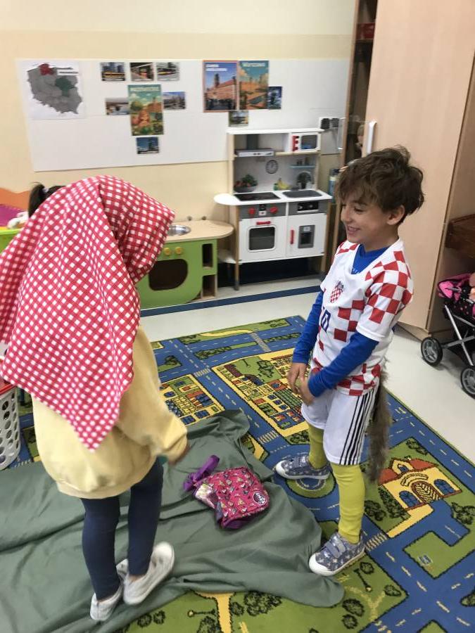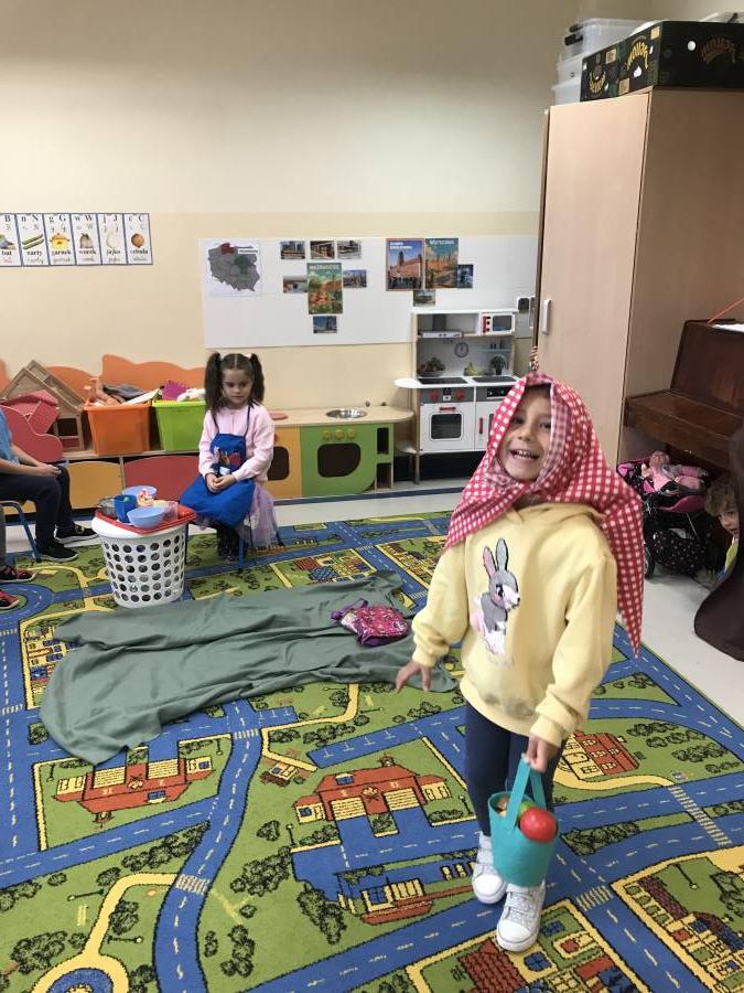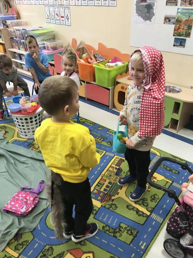 Dzisiaj Muchomorki miały okazję poczuć się jak prawdziwi aktorzy. Odegraliśmy spektakl pt. Czerwony Kapturek. Chętni aktorzy (Czerwony Kapturek, Babcia, Wilk i Leśniczy) występowali na scenie, a pozostali oglądali występ jako publiczność. Śmiechom nie było końca!